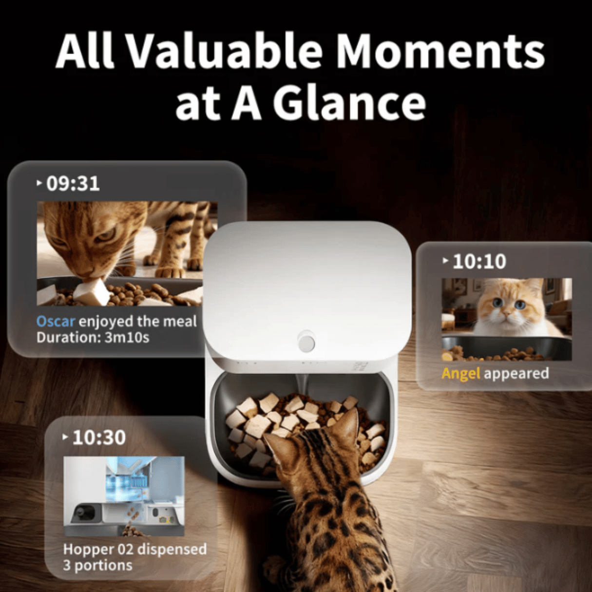 The auto-tracking system effortlessly captures, records, and categorizes videos according to your pets' activities, from playful antics to satisfying meals, providing you with a clear overview of their activities.