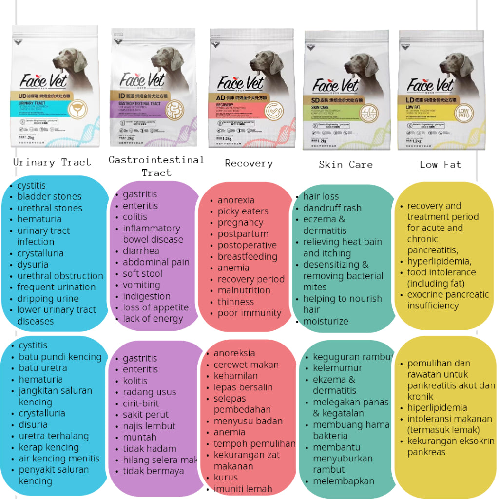 FaceVet Complete Prescription Food (Kibble) Cats and Dogs FaceVet Makanan Preskripsi (Kibble) untuk Kucing dan Anjing