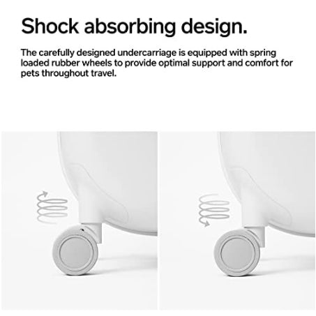 【Shock-Absorbing Design】The shock-absorbing design of the built-in spring with the rubber wheels,reduces bumps and noise during travelling on an uneven road,and brings a more comfortable travel experience to cats.