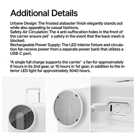 【Independent Ventilation System】The built-in fan assists air exchange in the carrier,and keeps air circulation inside.