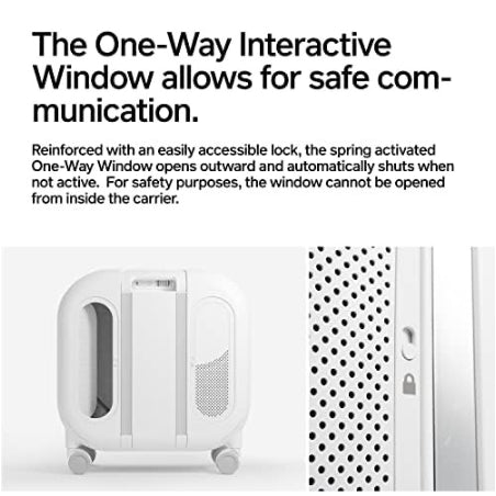 【One-Way Interactive Window】It is a safe design that facilitates comforting actions.The interactive window can be opened outward through the lock button.When the applied force is removed, the window will automatically close due to the spring force.For safety, the window cannot be opened internally, The adjustable and fixed handle parts make travel easy and effortless.
