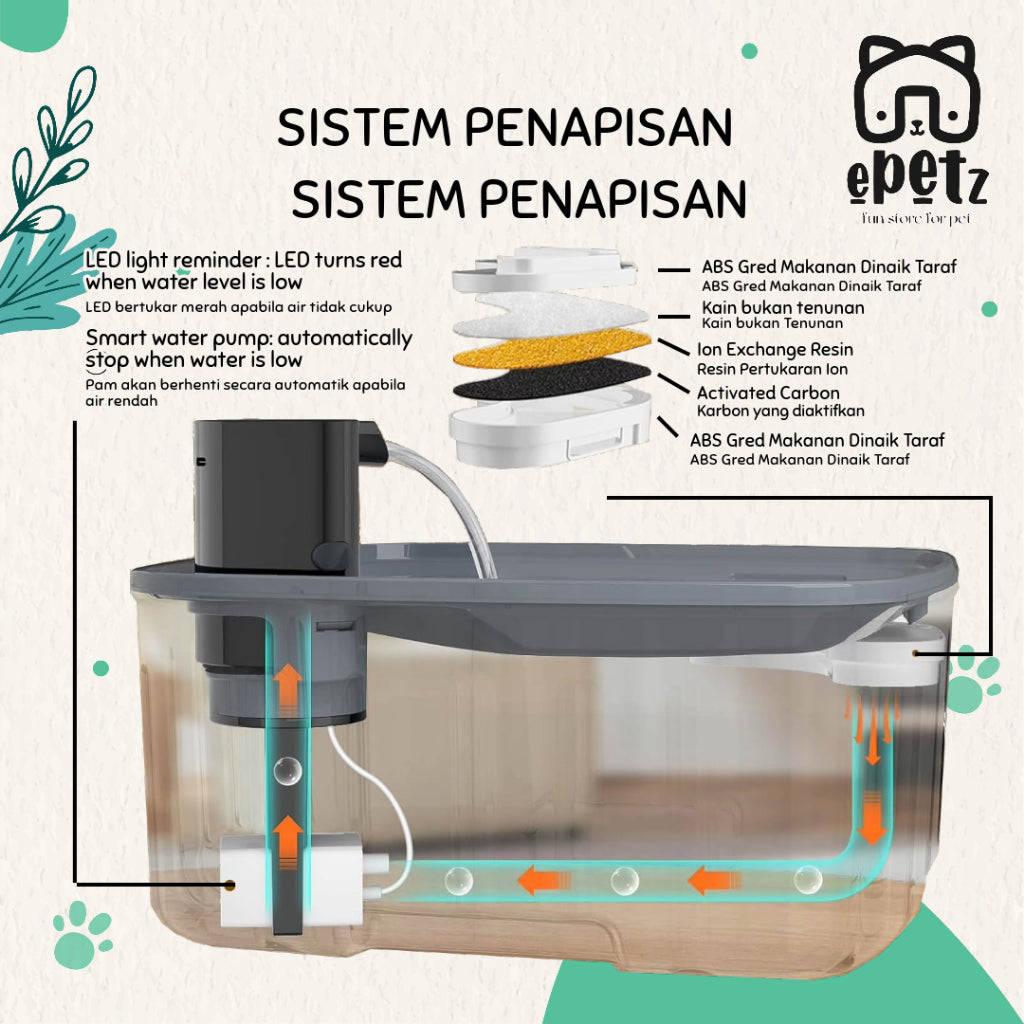 ePetz 8L Large Automatic Rechargeable Sensor Battery Water Fountain